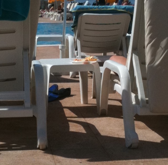 08:20 – everyone is still in bed, I’ve done breakfast and I’m back at the pool. Just noticed a new sign has been erected (heh he I said erect) with the rules of the pool on it.